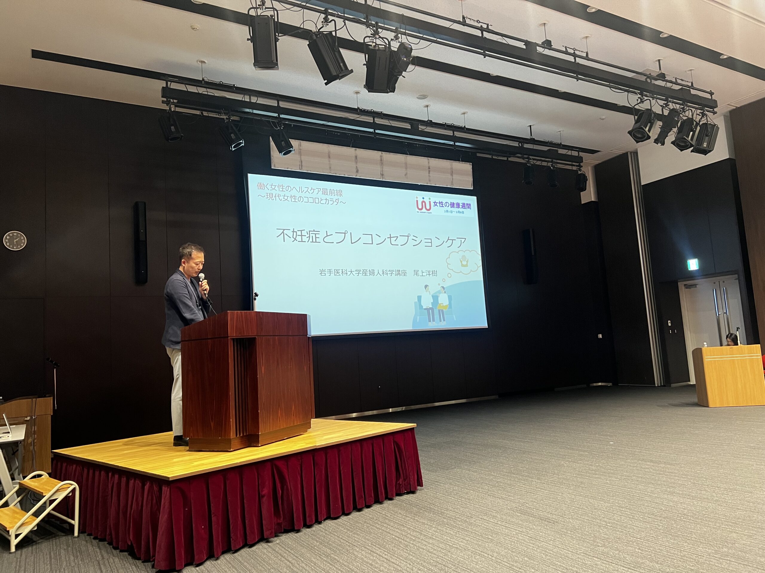 毎年この時期は女性の健康週間として、全国各地で講演会やセミナーが行われています。今年のテーマは、”働く女性のヘルスケア最前線~現代女性のココロとカラダ~”でした。佐藤はPMSについて、尾上先生からは不妊症・プレコンセプションケアについて、お話をしてきました。
